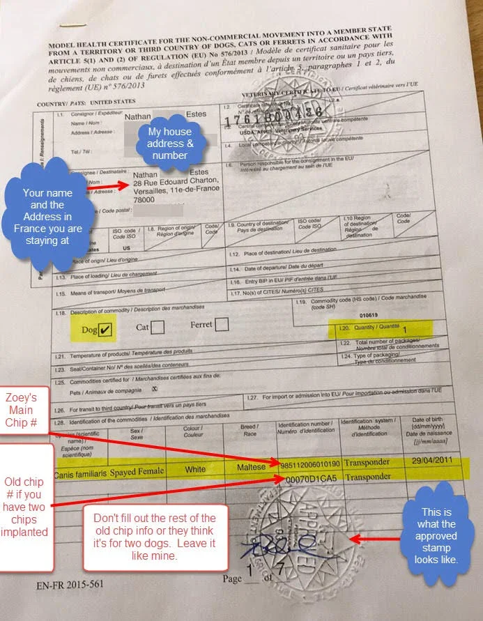 If you are traveling to France for surgery with your dog, you will either have to make the trip to the USDA's office for your pet's USDA travel certificate or send the documents via courier.  This post includes examples to…