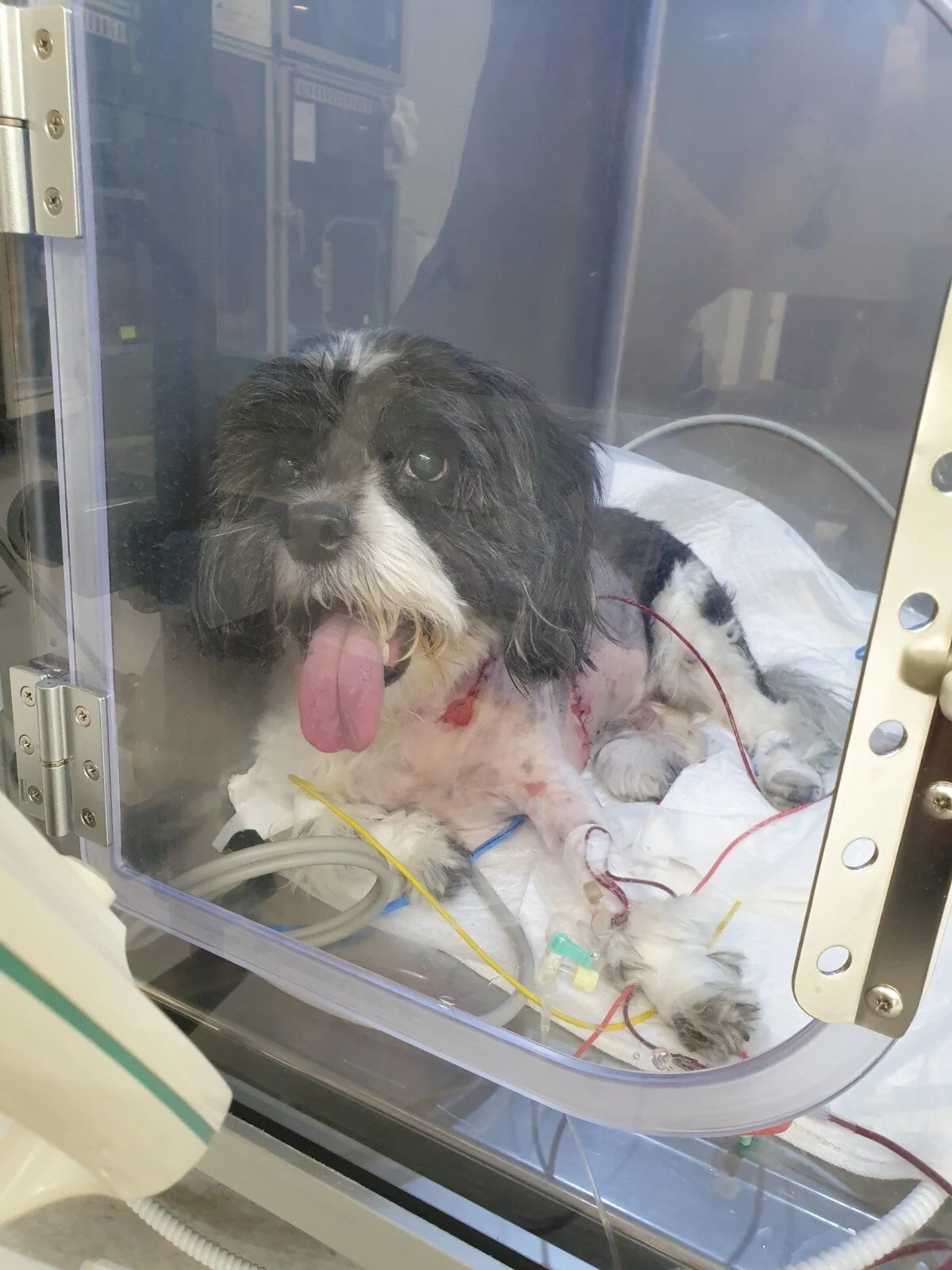 In February of 2021, Chloe’s condition rapidly deteriorated. She spent several days in Dr Kramer’s hospital with congestive heart failure. Although her pulmonary hypertension was under control the mitral valve disease worsened and her heart grew rapidly. Her LA:AO was 2.65 which is very large. Her trachea and bronchioles were getting crushed, and the coughing and panting were hard to manage. The Jasmine clinic gave us a surgery date of 7/6/21.