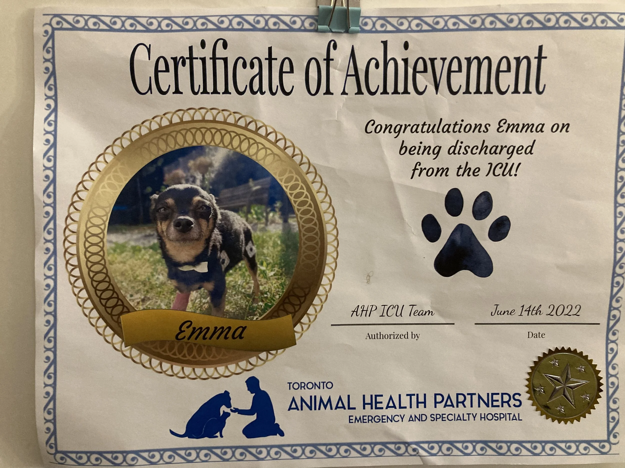 Everything fell apart July 2022. One night, Emma got too excited and collapsed. When she came to, her breathing rate shot up to the 80s. She was rushed to hospital and admitted for heart failure. A few hours later, her heart stopped. Thank God for her amazing team – they jumped into action and brought her back. The vet said that life expectancy was 6 months to a year, if she makes it through this exacerbation.
