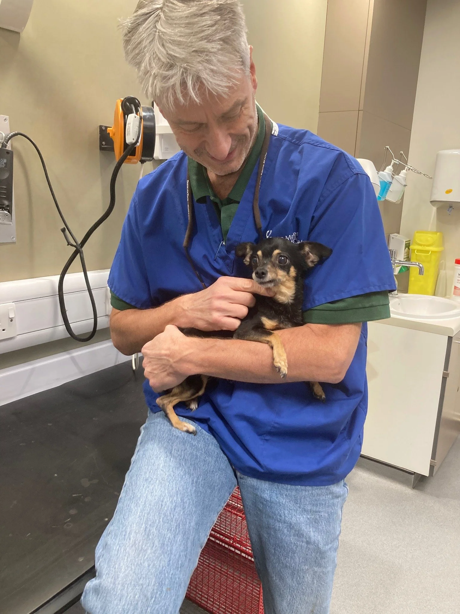 Emma’s surgery went well. Her heart shrank and her cough improved significantly. Emma’s furosemide and benazepril were stopped. She is now classified as stage B2. There was some residual regurgitation, so we are continuing the Pimobendan at 1/3 her precious dose. In total, we went from seven pills a day to just two. Functionally, Emma is more energetic and full of life than ever. She recovered quickly and grew very attached to Dr. Brockman.